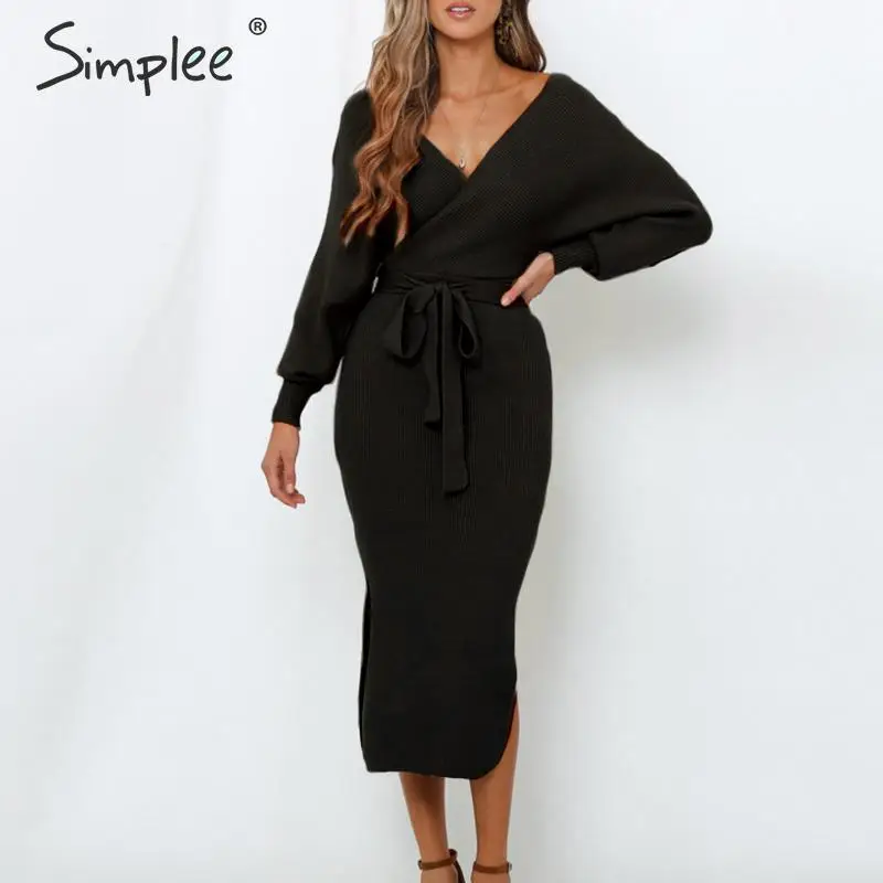This product Simplee Sexy v-neck knitted dress Women solid high waist sheath autumn dress Elegant belt office la is provided for you. Don't hesitate to buy this product.if you are interested in this product and want to buy, just click the buy button to get a discount